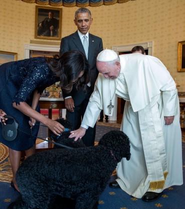 Hasta los perros de la Casa Blanca y de la familia presidencial recibió el saludo y las caricias del Papa Francisco.