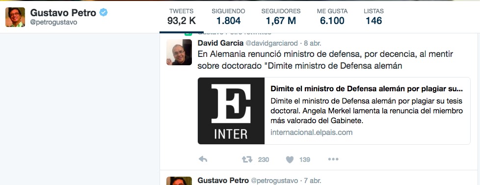 Y de los tantos trinos de Petro contra Peñalosa por la inexistencia del Doctorado del actual Alcalde, destaco estos: