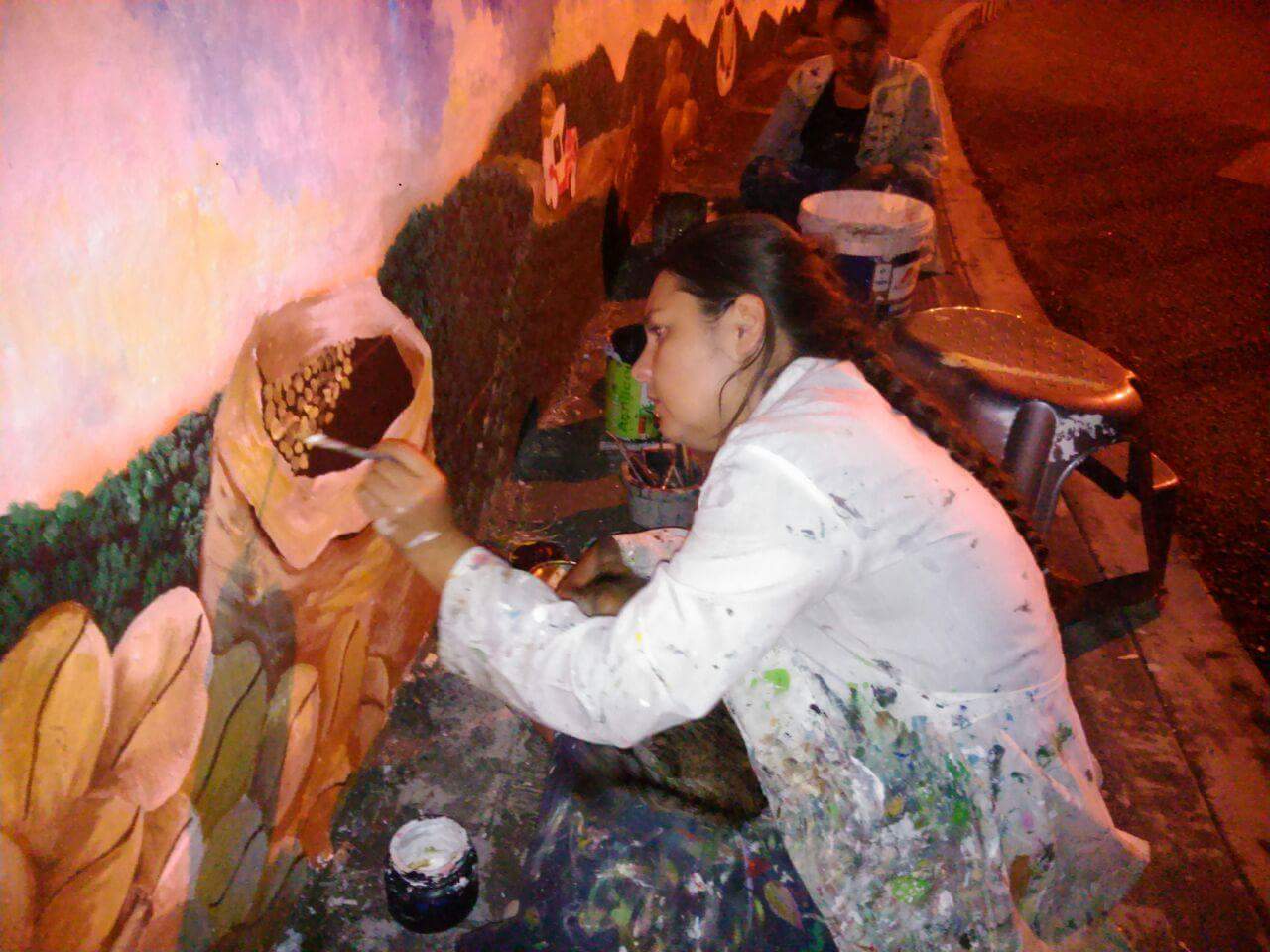 Mónica Lorena, siempre inspirada canta con sus pinceles y resalta los valores culturales, raíces y tradiciones propias de esta tierra, los muros y paredes.