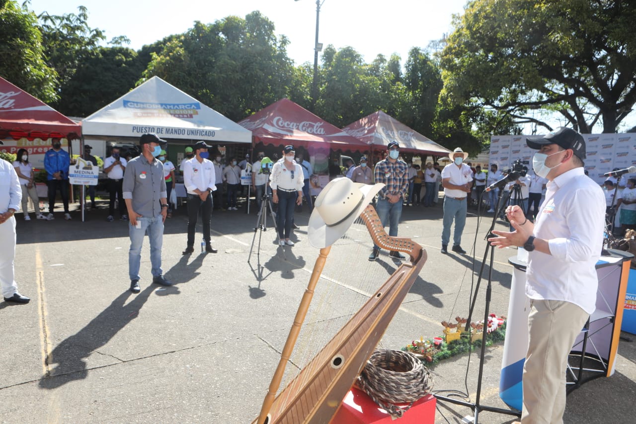 «Feliz de estar aquí en el corazón del llano cundinamarqués para firmar convenios por más de $17.000 millones con los municipios de las provincias de Medina y el Guavio. Seguimos empeñados en terminar la vía por el sector de Algodones para que logremos que al llano se llegue por el Guavio, un compromiso de todos; fruto de estos convenios se adelantarán obras de infraestructura vial, mantenimiento de maquinaria amarilla, vivienda, apoyo al sector agrícola, entre otros. En el próximo año invertiremos más de $160.000 millones en infraestructura en salud», expresó el Mandatario Nicolás García.