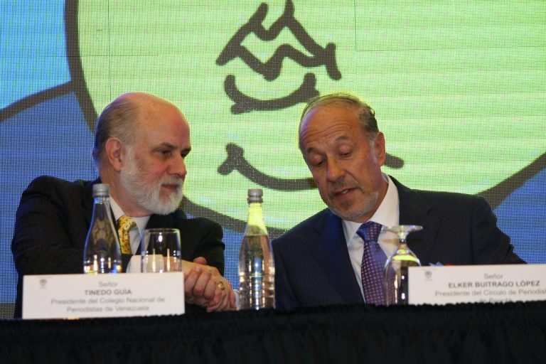 Élker Buitrago en compañía de Tinedo Guía presidente del Colegio Nacional de Periodistas de Venezuela.