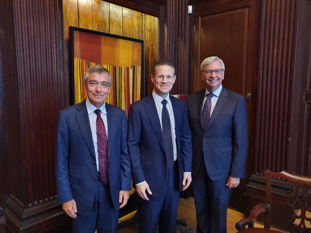 De izquierda a derecha: el profesor Christoph Loch, director de Cambridge Judge Business School; Badr Jafar, patrono fundador del Centro de Filantropía Estratégica; y el profesor Stephen Toope, vice rector de la Universidad de Cambridge, firmando el acuerdo para el Centro de Filantropía Estratégica.