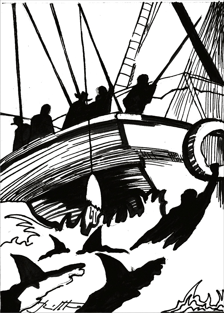 –Mira, David por la popa del barco nos acompaña una mancha de tiburones. Caramba se están comiendo los bonitos que vienen en los anzuelos.