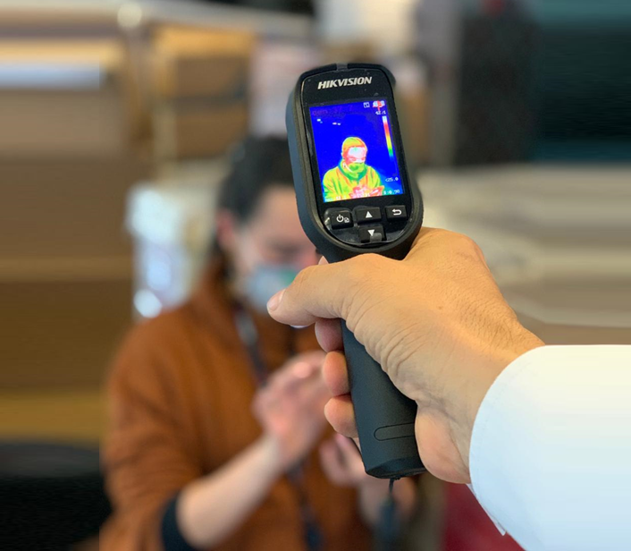 El uso de los termómetros infrarrojos expone al operario a estar a menos de 5cm con personas que puedan ser portadoras de la enfermedad, en cambio con las cámaras térmicas portátiles se sigue preservando una distancia prudente, ya que es capaz de medir la temperatura corporal con precisión a una distancia segura de hasta 2 metros.