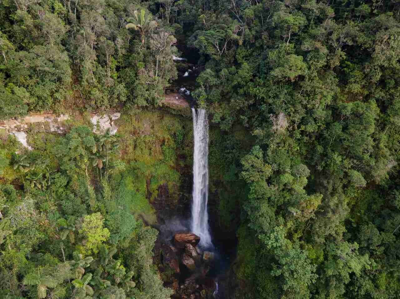 La imponente cascada de más de 70 metros de altura, accesible a través de una ruta sencilla y bien demarcada que serpentea por la exuberante selva amazónica.