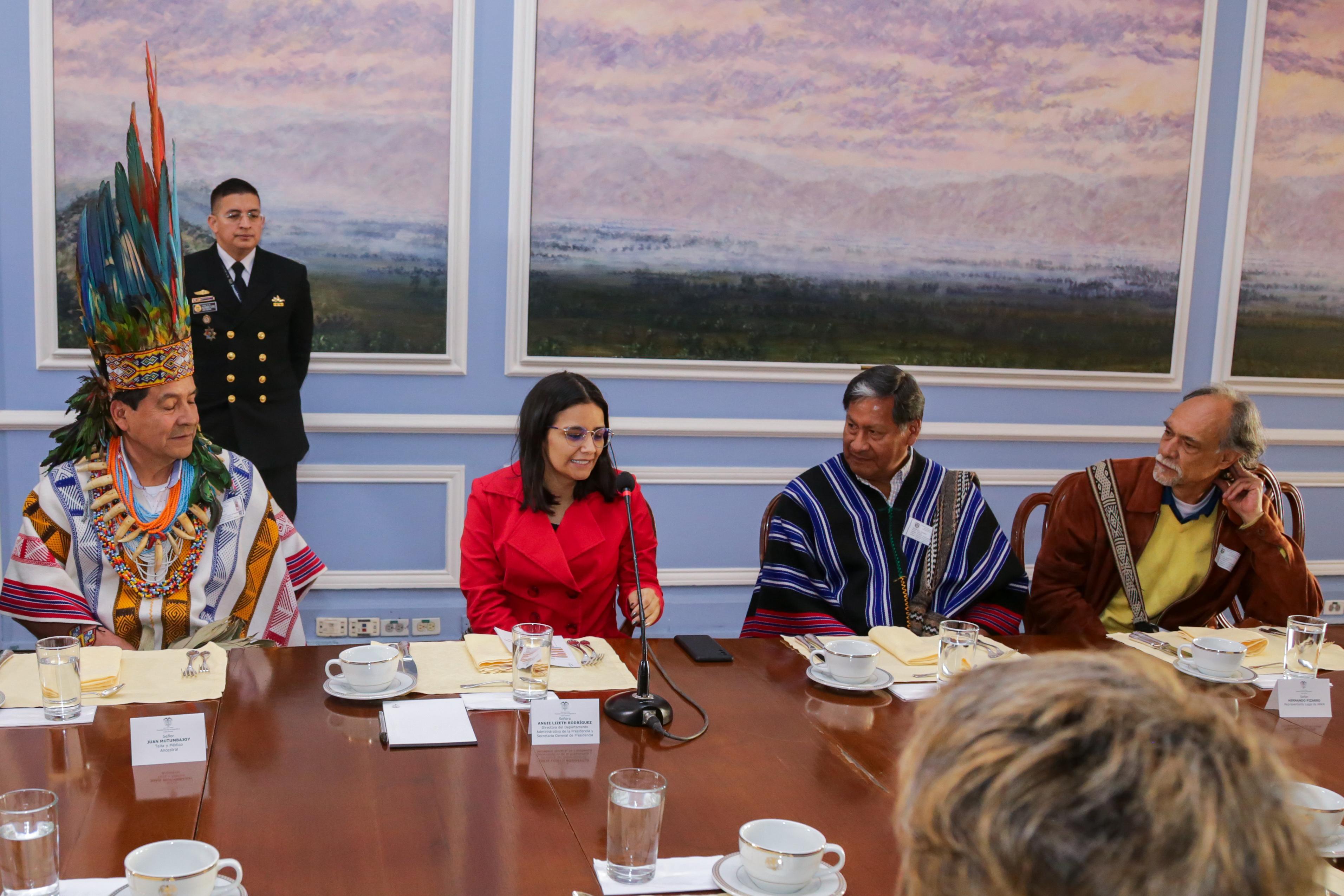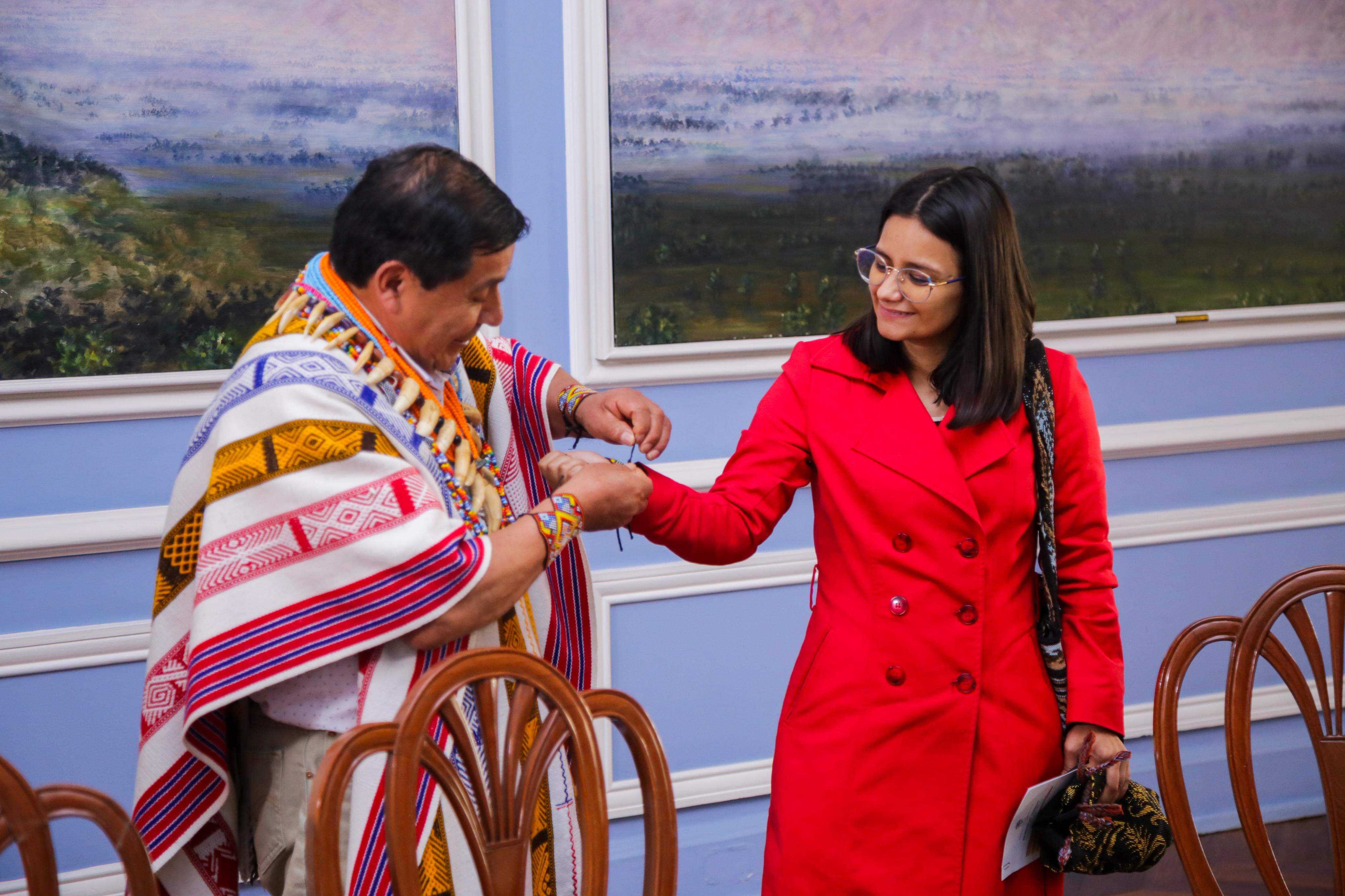 Las anfitrionas del encuentro con las comunidades indígenas por parte del gobierno nacional fueron:La Secretaria General de la Presidencia de la República, Angie Lizeth Rodríguez y la ministra de Comercio Exterior,Diana Marcela Morales Rojas.