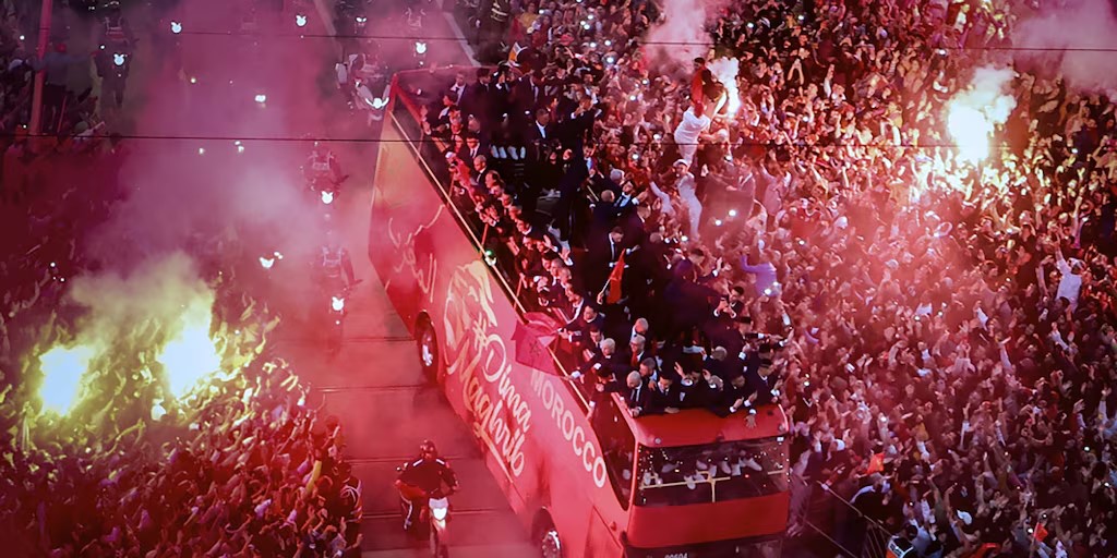 La selección de Marruecos fue recibida por su gente en su capital, Rabat, cuyas calles se llenaron de una multitud, pudieron celebrar de forma ordenada, sin incidentes y completar el recorrido.