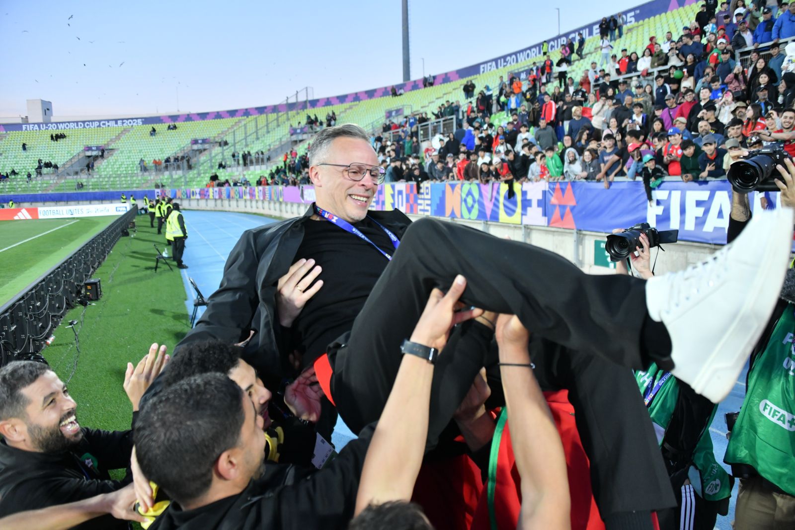 Tras la histórica clasificación, el técnico de Marruecos fue aclamado y alzado en hombros por sus jugadores en medio de la euforia por alcanzar la final.