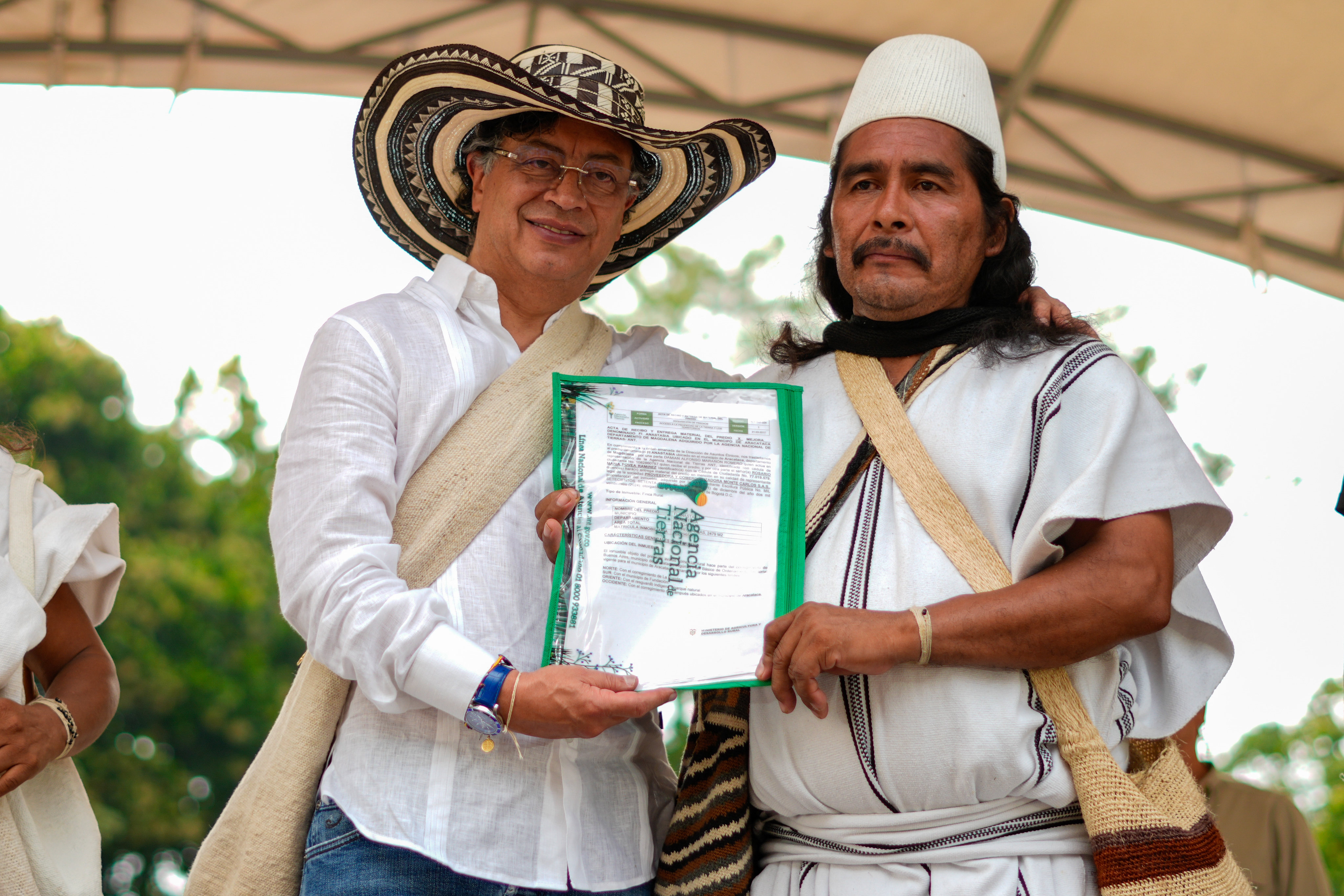La consulta popular es para apoyar a todo el pueblo trabajador de Colombia, hombres, mujeres, jóvenes y viejos, que somos trabajadores, porque yo me considero trabajador. No es solo el trabajador asalariado, la trabajadora que recibe un salario, claro que sí, son la mitad más o menos del pueblo trabajador de Colombia, sino también para el trabajador y la trabajadora que no reciben salario,dijo el presidente Petro en la entrega de títulos de tierras a los nativos de la Sierra Nevada de Santa Marta.