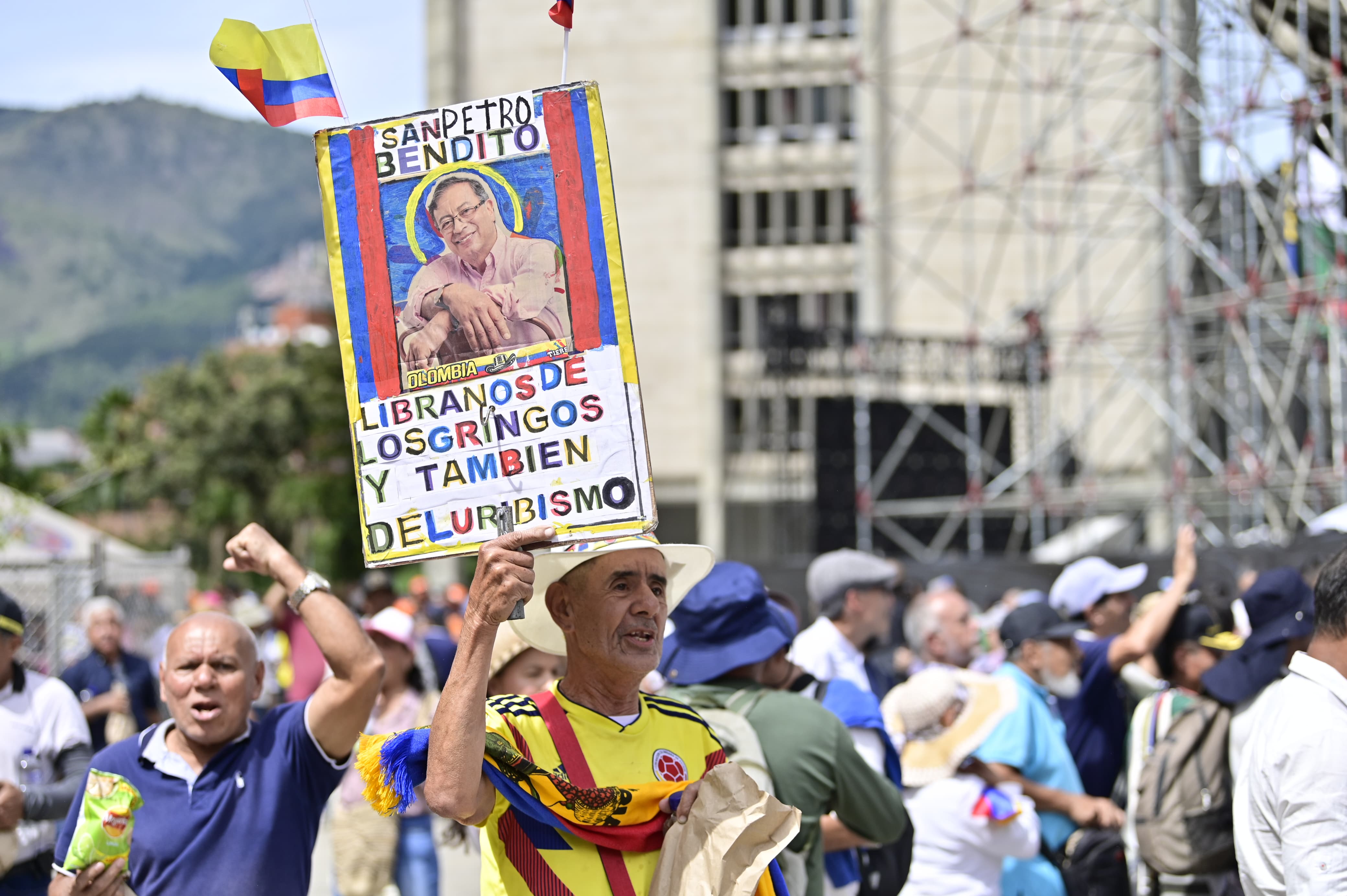En diversas pancartas y carteles, el mandatario fue ilustrado como «San Petro Bendito». Esta iconografía, que lo elevaba a una figura de santidad, marcó la jornada y generó diversas reacciones en el ambiente político de la ciudad.