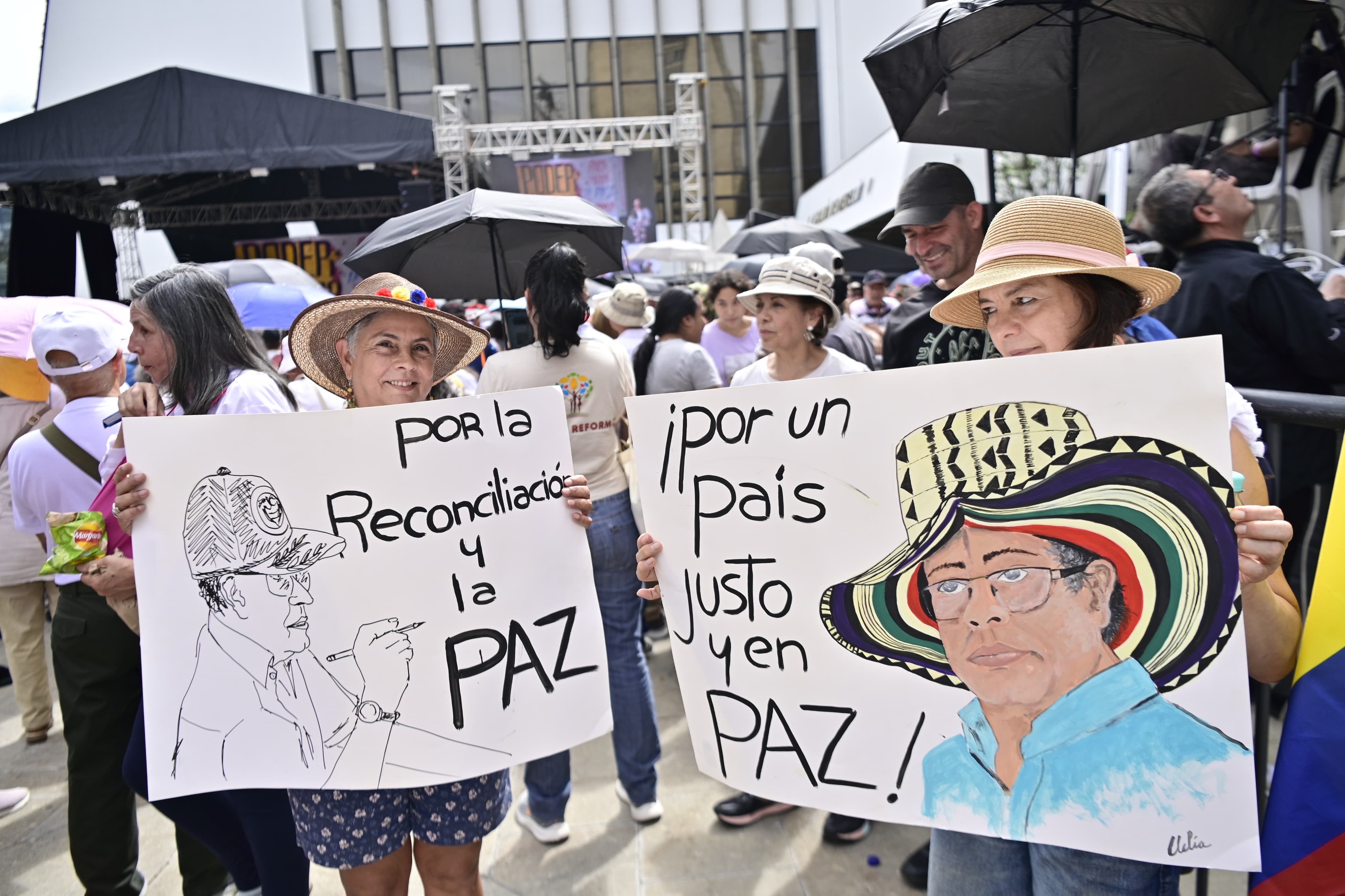 Pancartas y mensajes exhibidos por los manifestantes antioqueños. El anhelo de reconciliación y el respaldo a las iniciativas de paz de Petro, fueron evidentes a lo largo del encuentro.