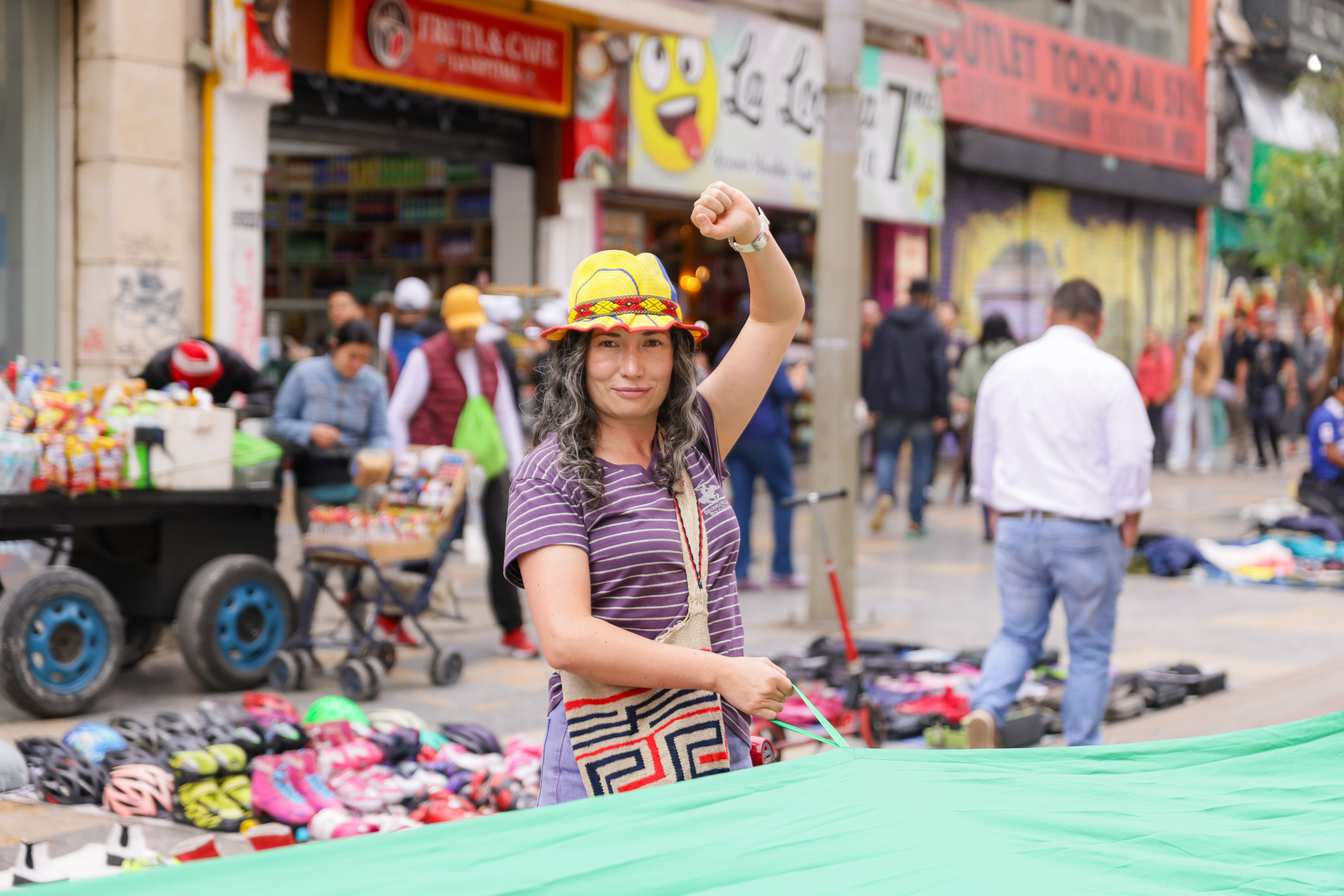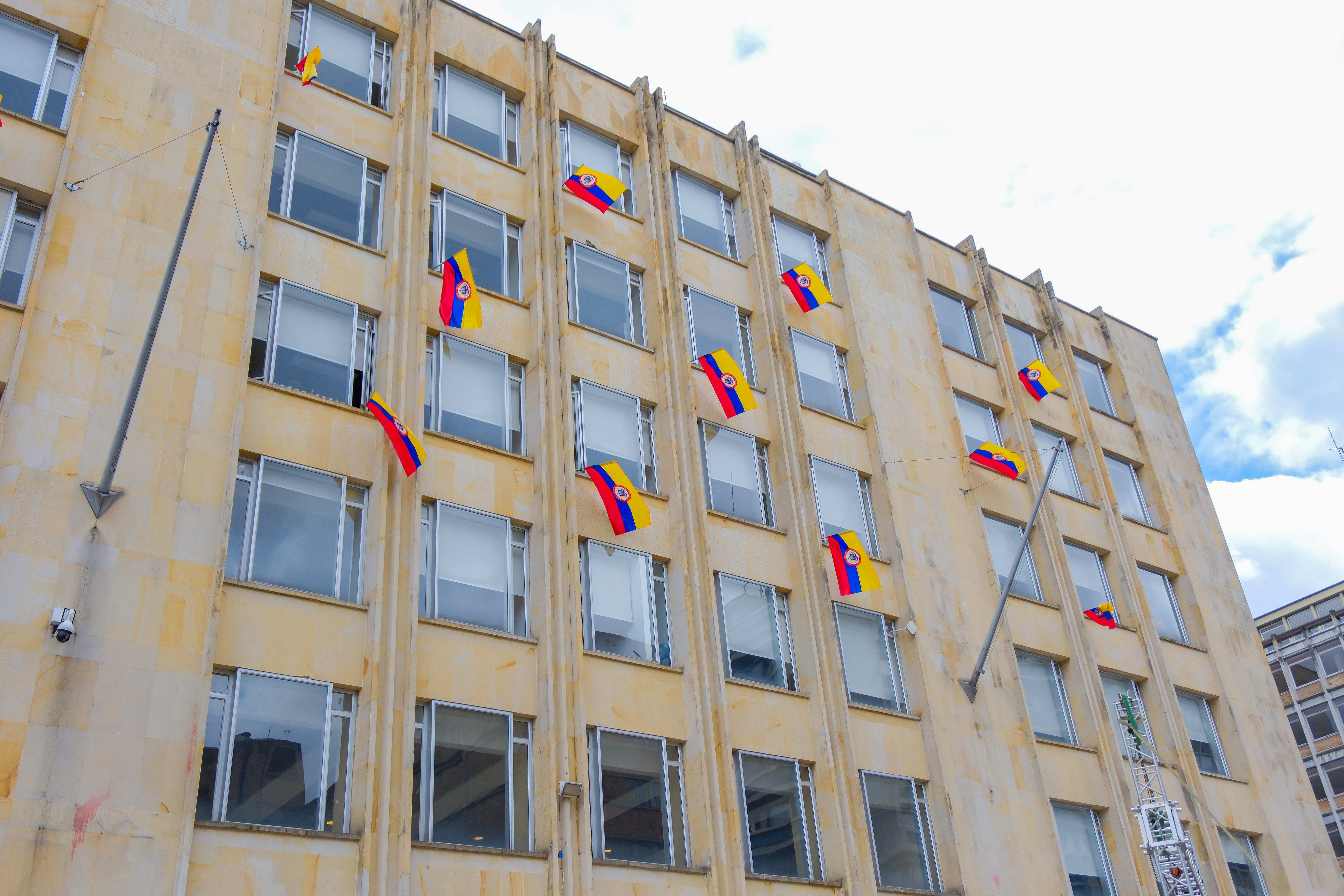 Ministerio de las TIC izando múltiples banderas de Colombia