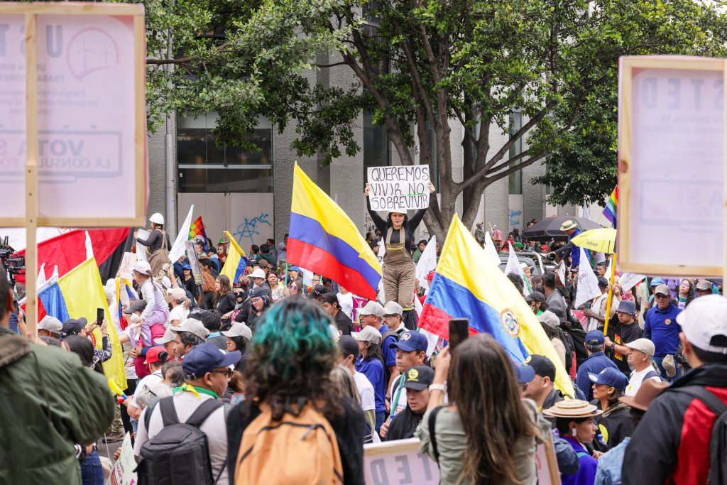 Multitudinaria manifestación en el Día del Trabajo, agitando el debate sobre su propuesta de consulta popular