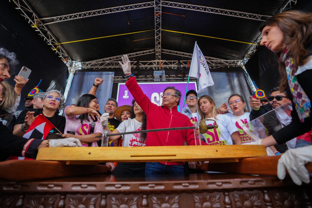 En el Día del Trabajo, Petro, espada de Bolívar en mano, irrumpió en la plaza, clamando por el apoyo senatorial a su consulta popular. 1 La multitud, testigo de un gesto cargado de simbolismo, osciló entre la euforia y la esperanza. La réplica bolivariana, cual estandarte, elevó la tensión política, presagiando un futuro para la clase trabajadora y el pueblo colombiano.