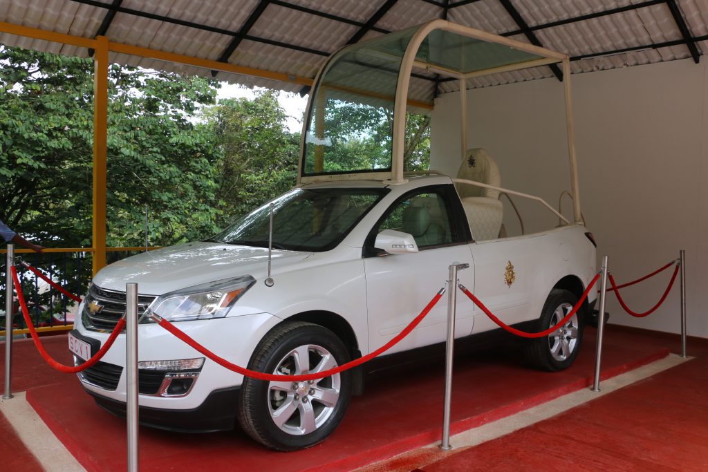 El papamóvil que transportó al Sumo Pontífice durante su visita a Colombia en 2017.