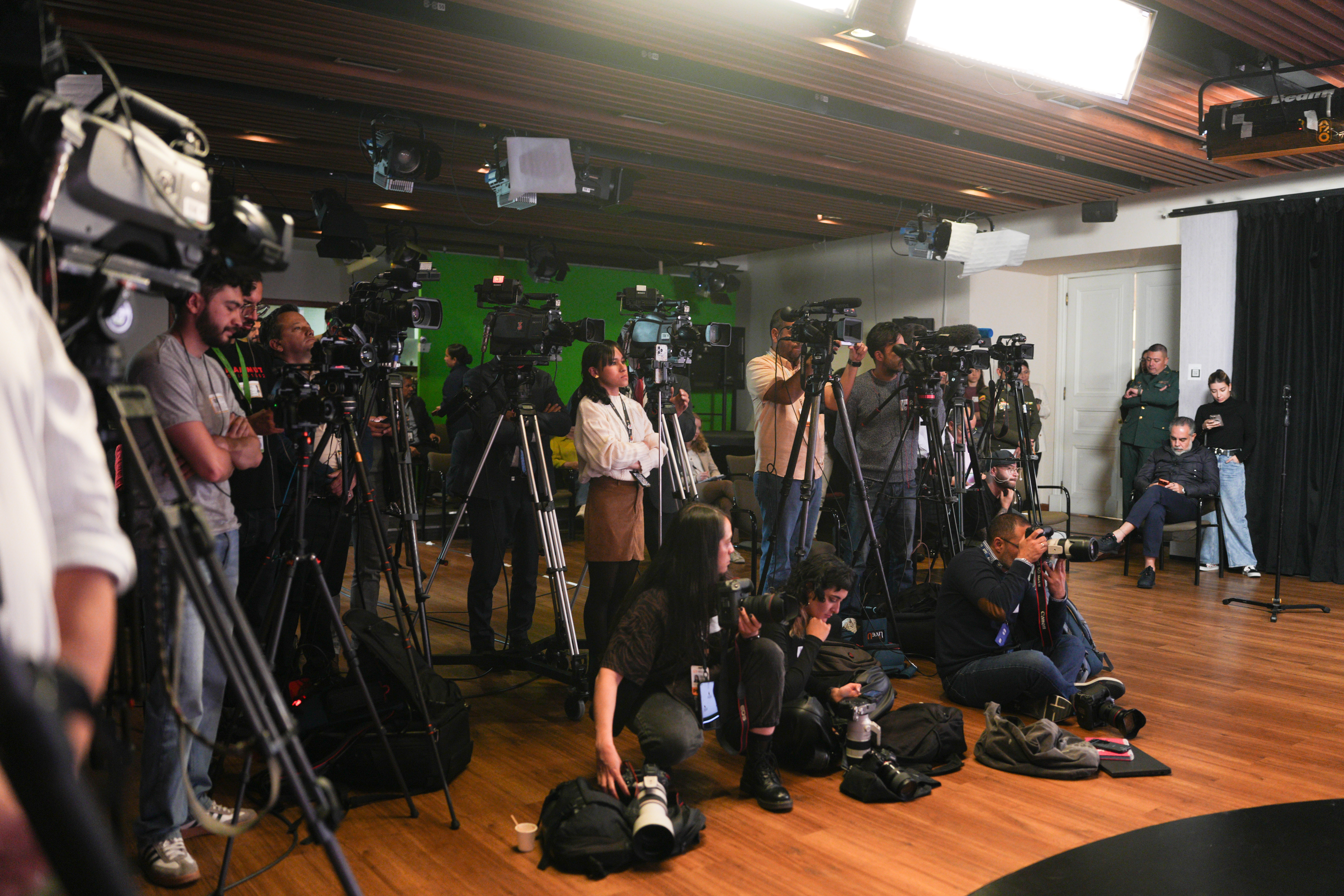 Prensa internacional en la Casa de Nariño, sede presidencial de Colombia.