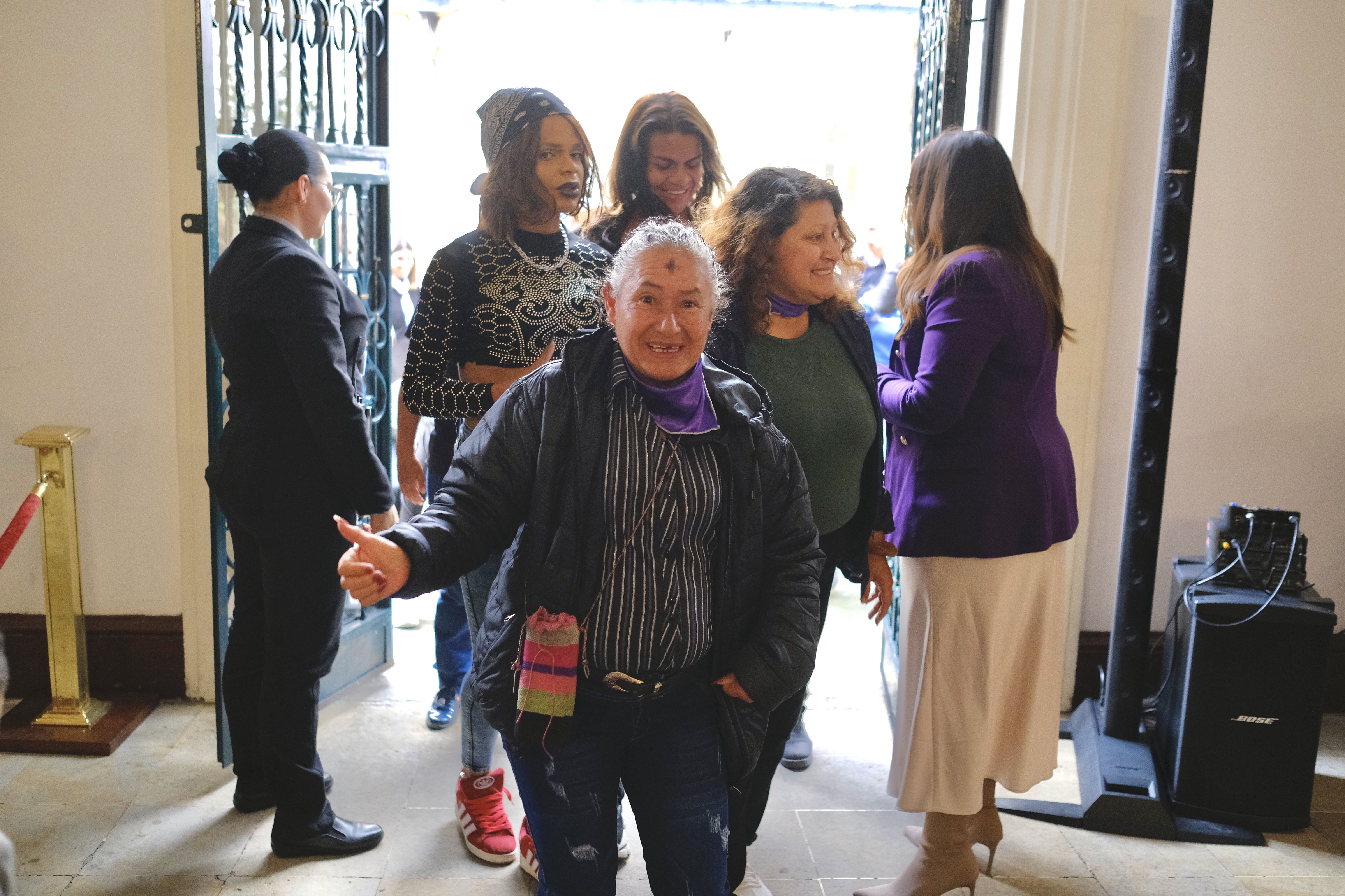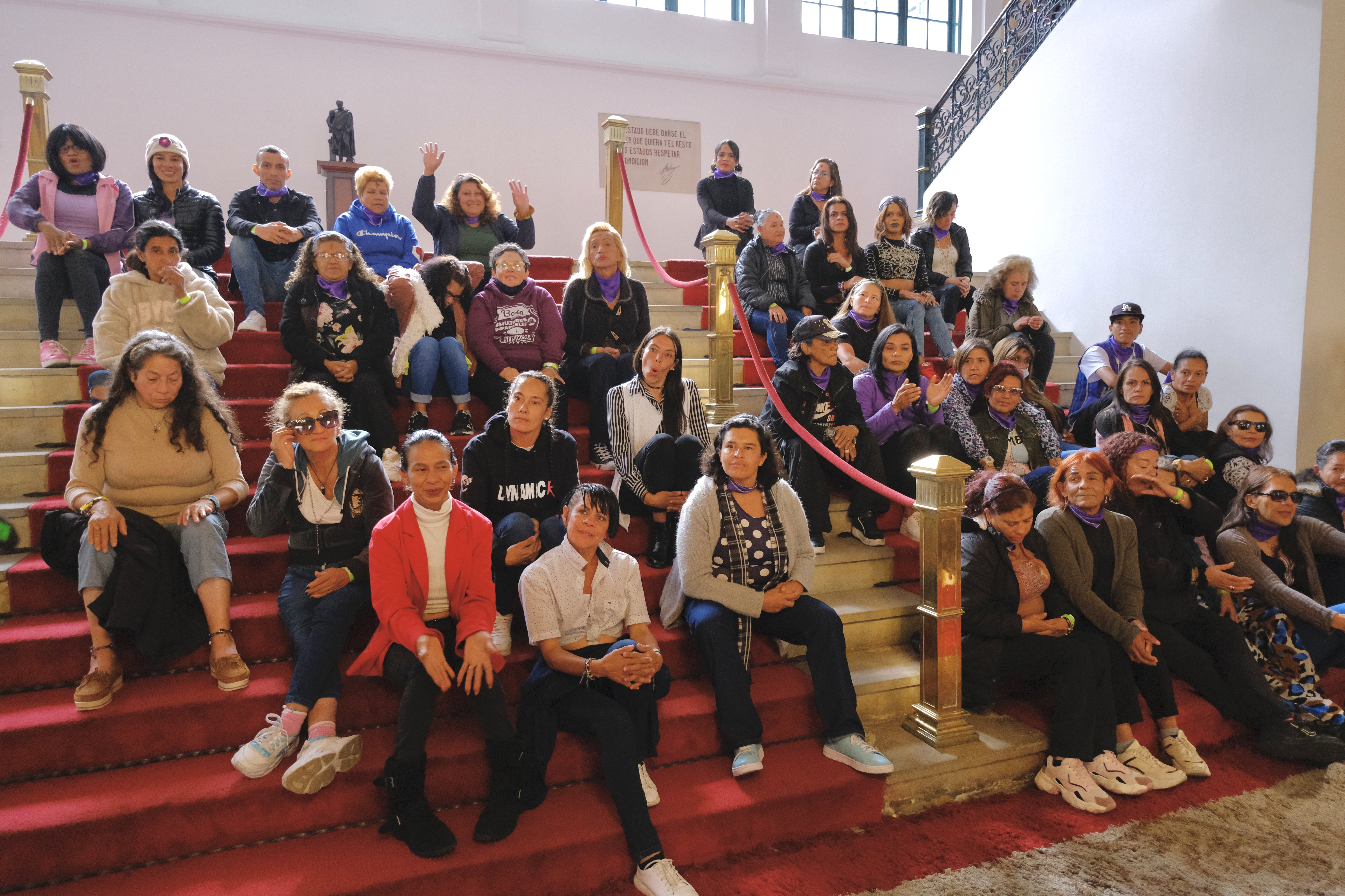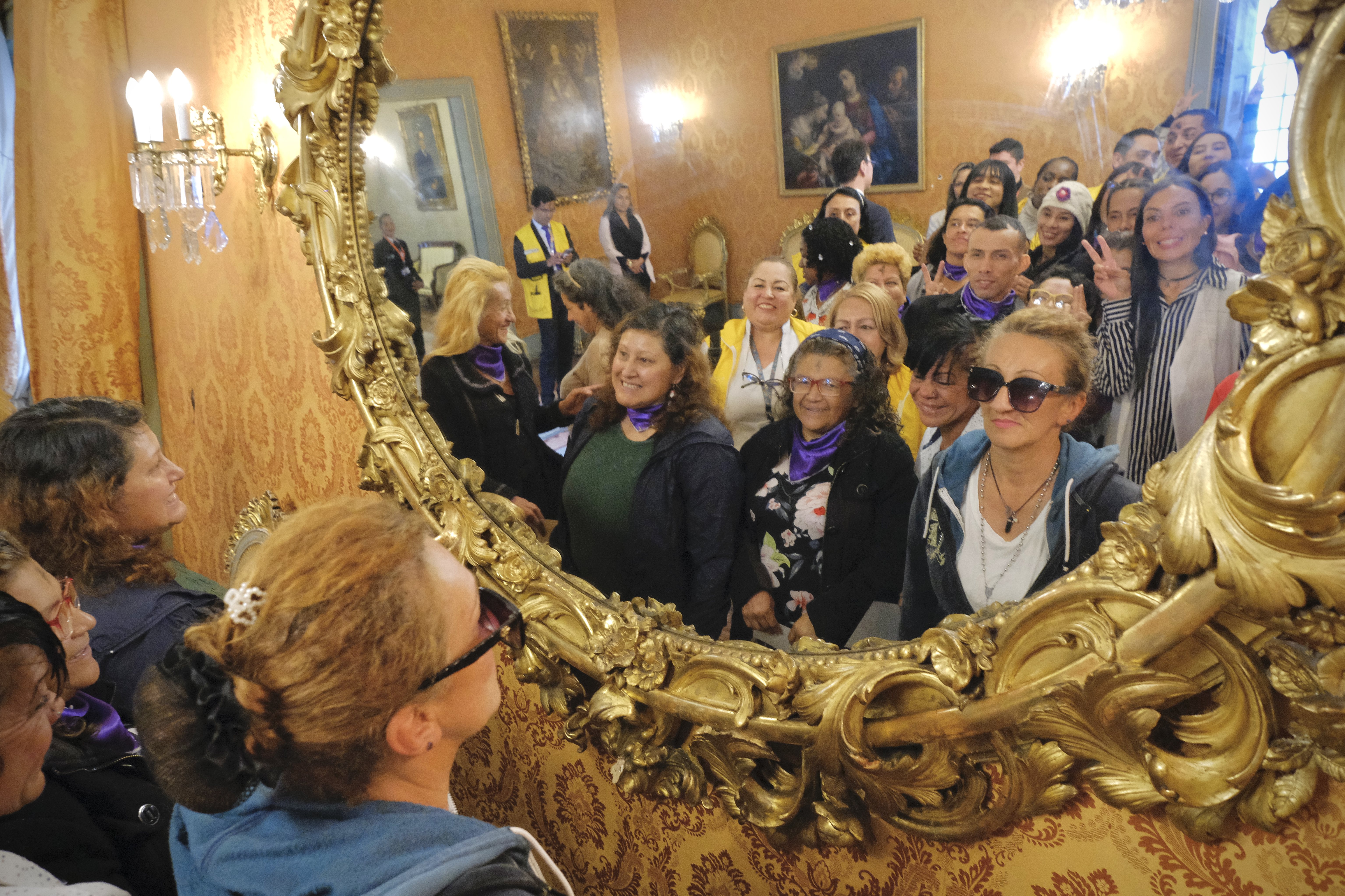 50 mujeres en situación de calle en el Palacio de San Carlos, sede del Ministerio de Relaciones Exteriores de Colombia. El evento se realizó en el marco del Día Internacional de los Derechos de las Mujeres.
