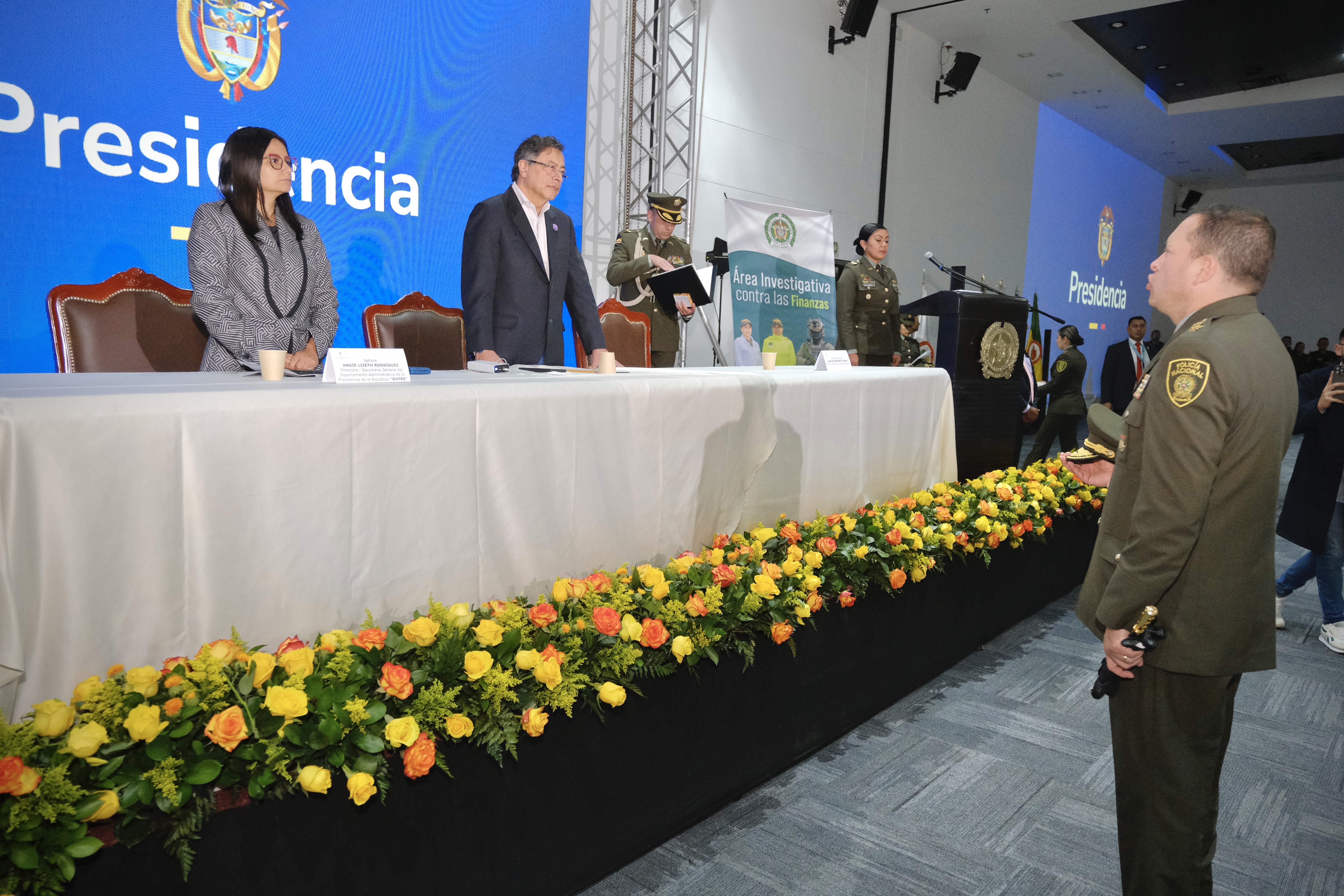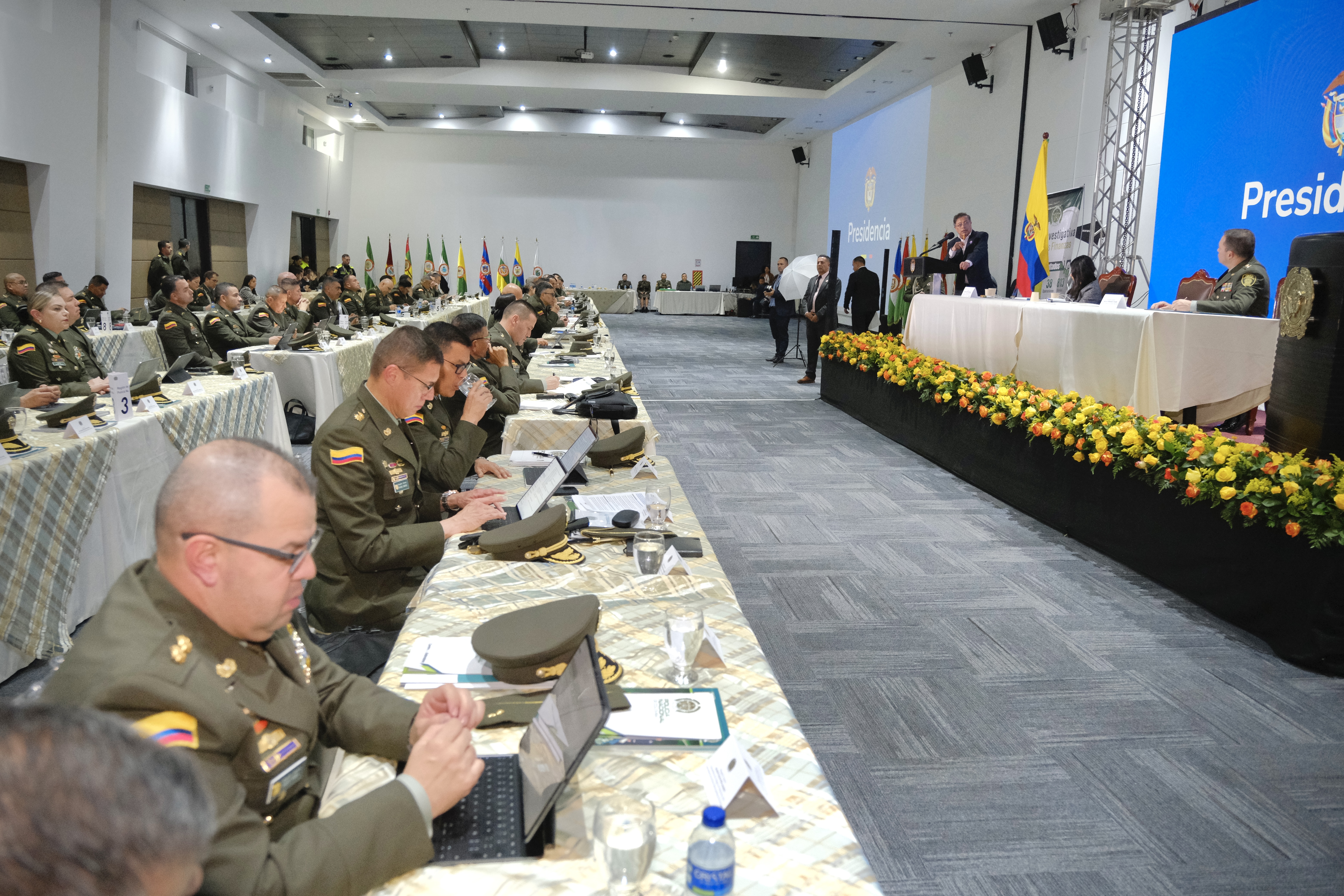 El presidente de Colombia, Gustavo Petro Urrego y los comandantes de Policía de todo el territorio nacional.