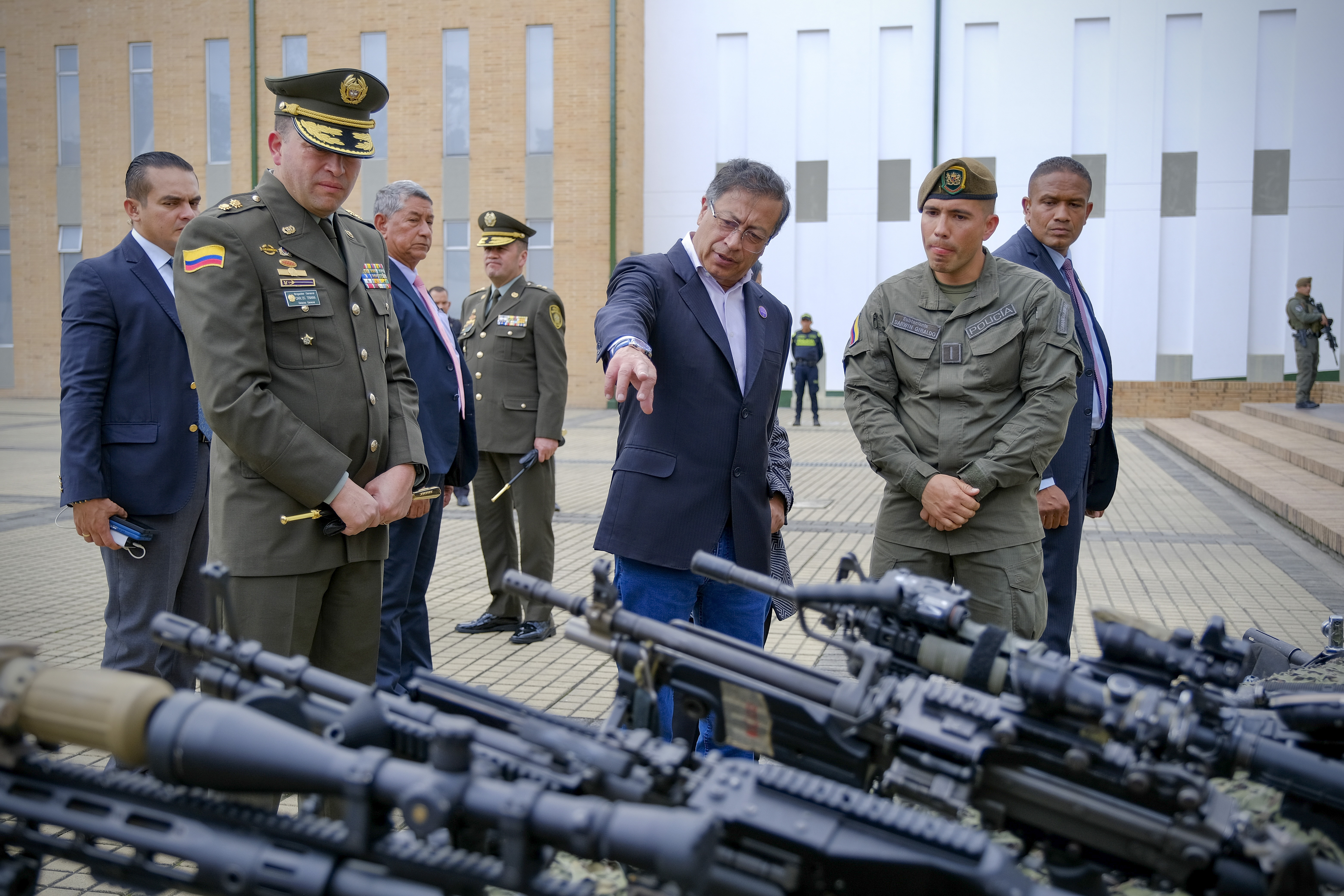 Una inspección del moderno armamento que recibió la policía para garantizar la seguridad de los colombianos.
