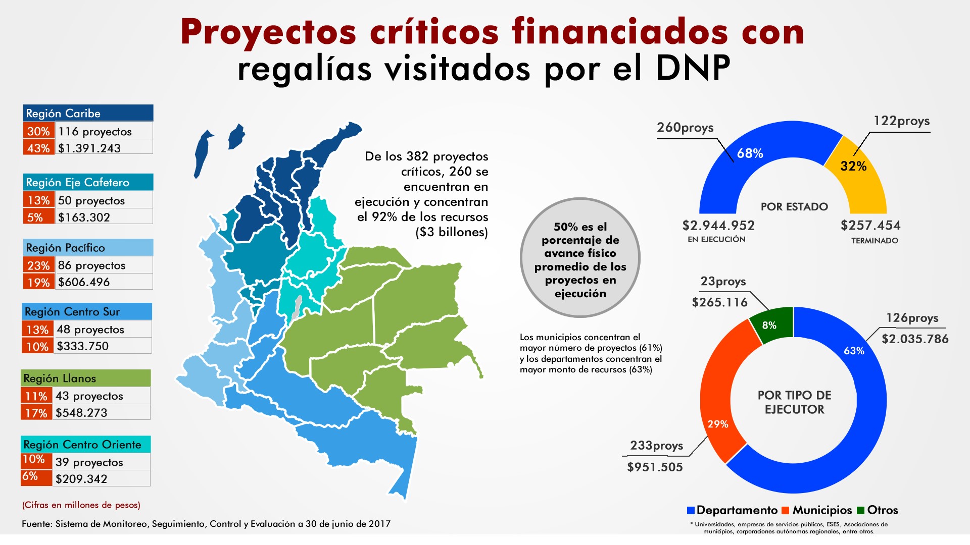 Las regalías de la nación a los departamentos de Colombia se distribuyen a través del Sistema General de Regalías (SGR). Este sistema busca que los ingresos de la explotación de recursos naturales no renovables se distribuyan equitativamente y se usen de manera eficiente.