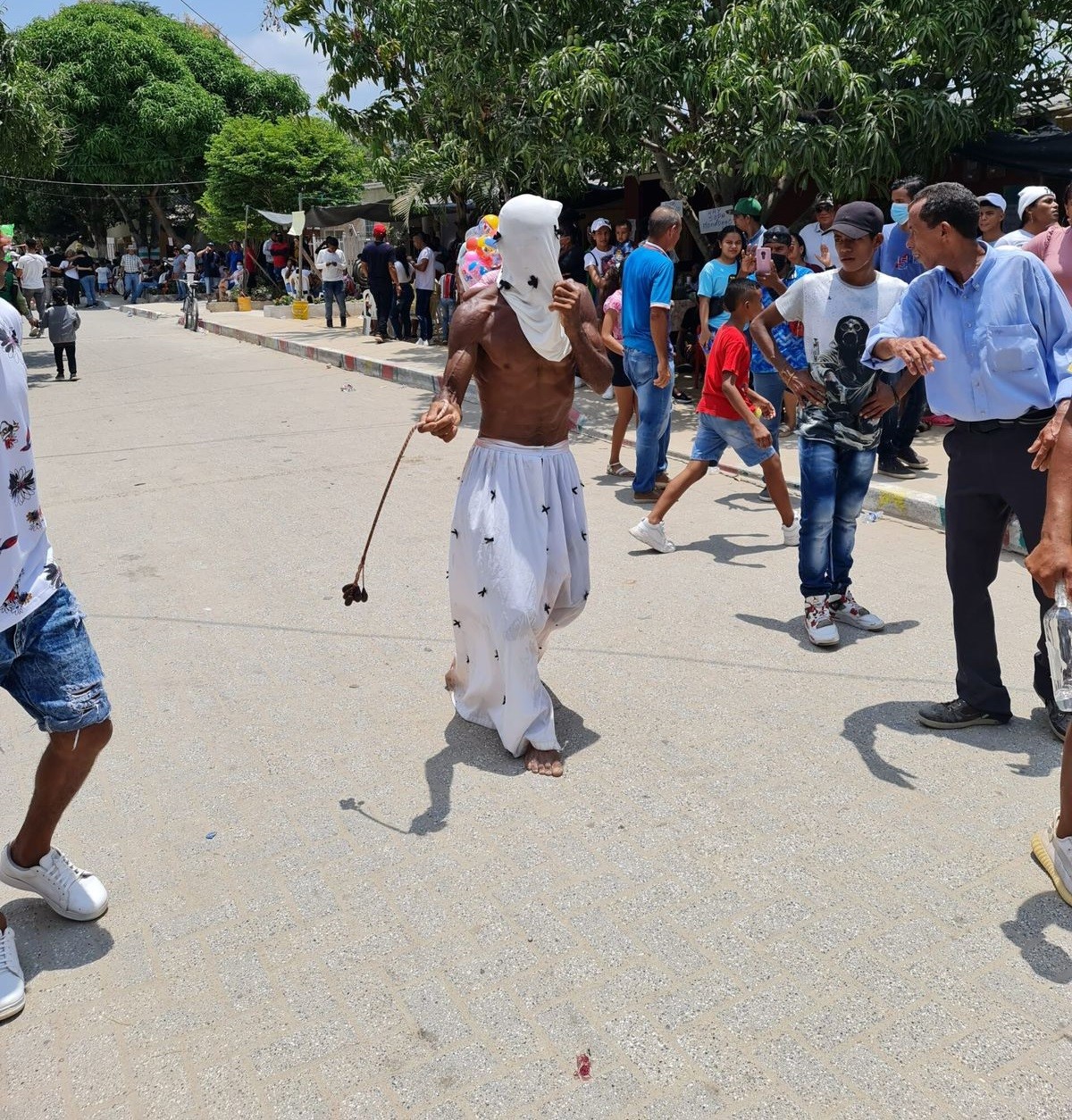La tradición, transmitida de generación en generación, atrae a cientos de curiosos y devotos que observan con mezcla de asombro y respeto cómo los penitentes, conocidos localmente como «flagelantes» o «disciplinantes», recorren las calles bajo el sol caribeño. Con la espalda descubierta, se golpean repetidamente con látigos artesanales, a menudo elaborados con cuerdas gruesas y trozos de metal o vidrio, hasta que la sangre brota y tiñe sus ropas.