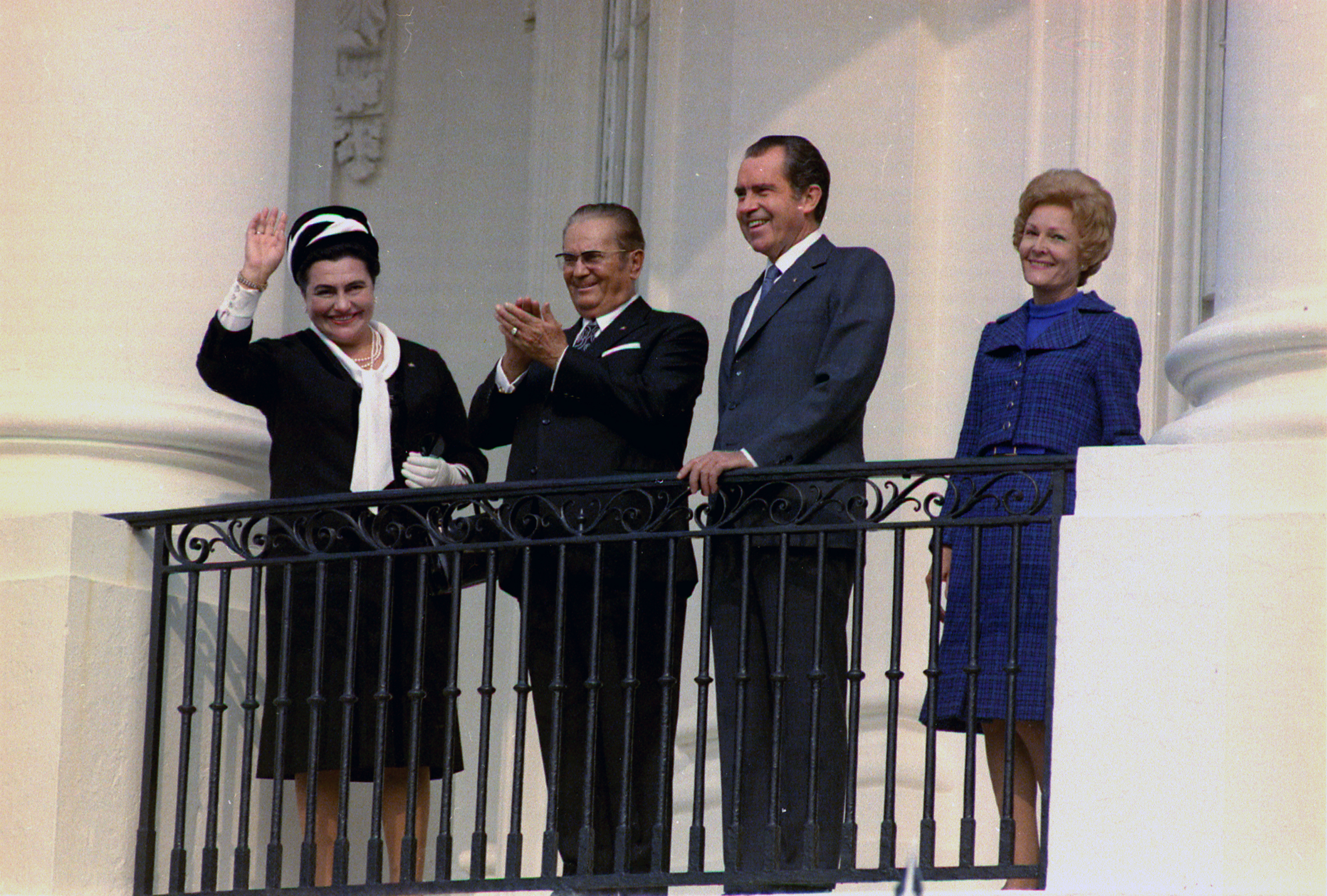 De izquierda a derecha: Jovanka Broz, Tito,Richar Nixon y Pat Nixon en la Casa Blanca (1971).