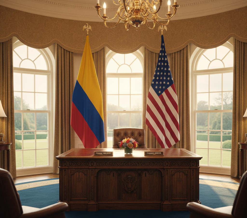 Los presidentes Donald Trump y Gustavo Petro se reúnen en la Oficina Oval de la Casa Blanca para redefinir el futuro de las relaciones bilaterales. Este encuentro en el corazón del poder estadounidense simboliza una «tregua estratégica» y el inicio de una nueva era de cooperación en seguridad y estabilidad regional.