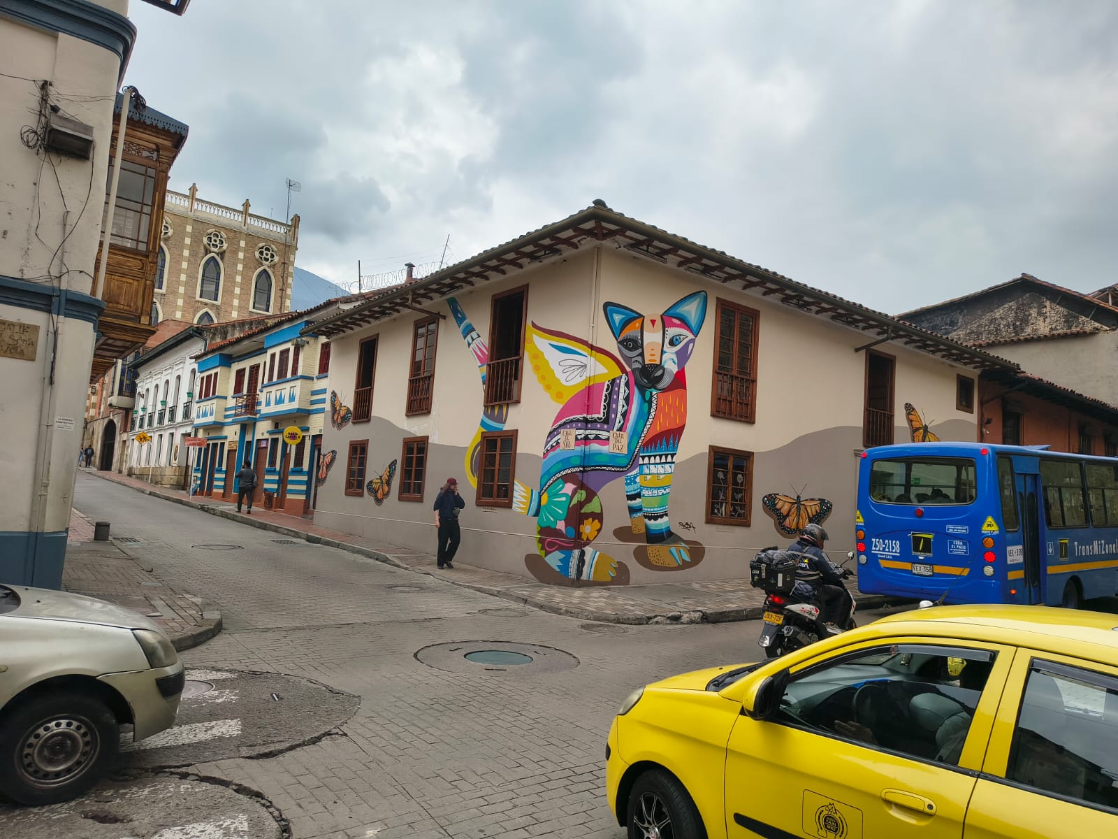 La identidad de La Candelaria cobra vida en sus fachadas coloniales, donde el arte urbano rinde homenaje al reino animal con murales vibrantes y llenos de simbolismo. Estas antiguas casonas transforman el patrimonio arquitectónico en una galería a cielo abierto que celebra la fauna y la esencia mística del barrio.