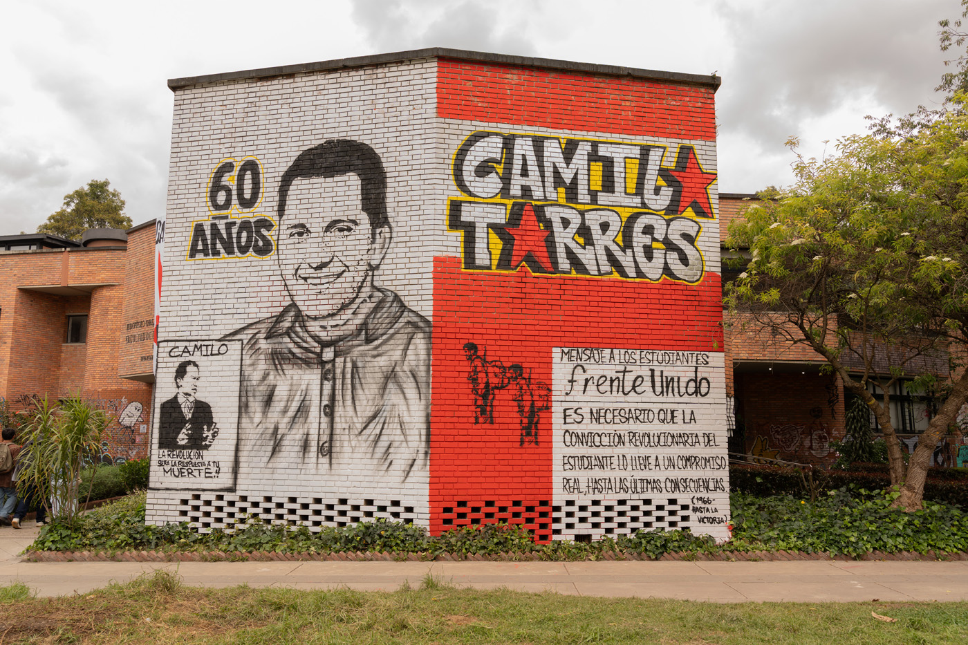 Mural realizado en la Facultad de Ciencias Humana en memoria de los 60 años de fallecimiento del padre Camilo.